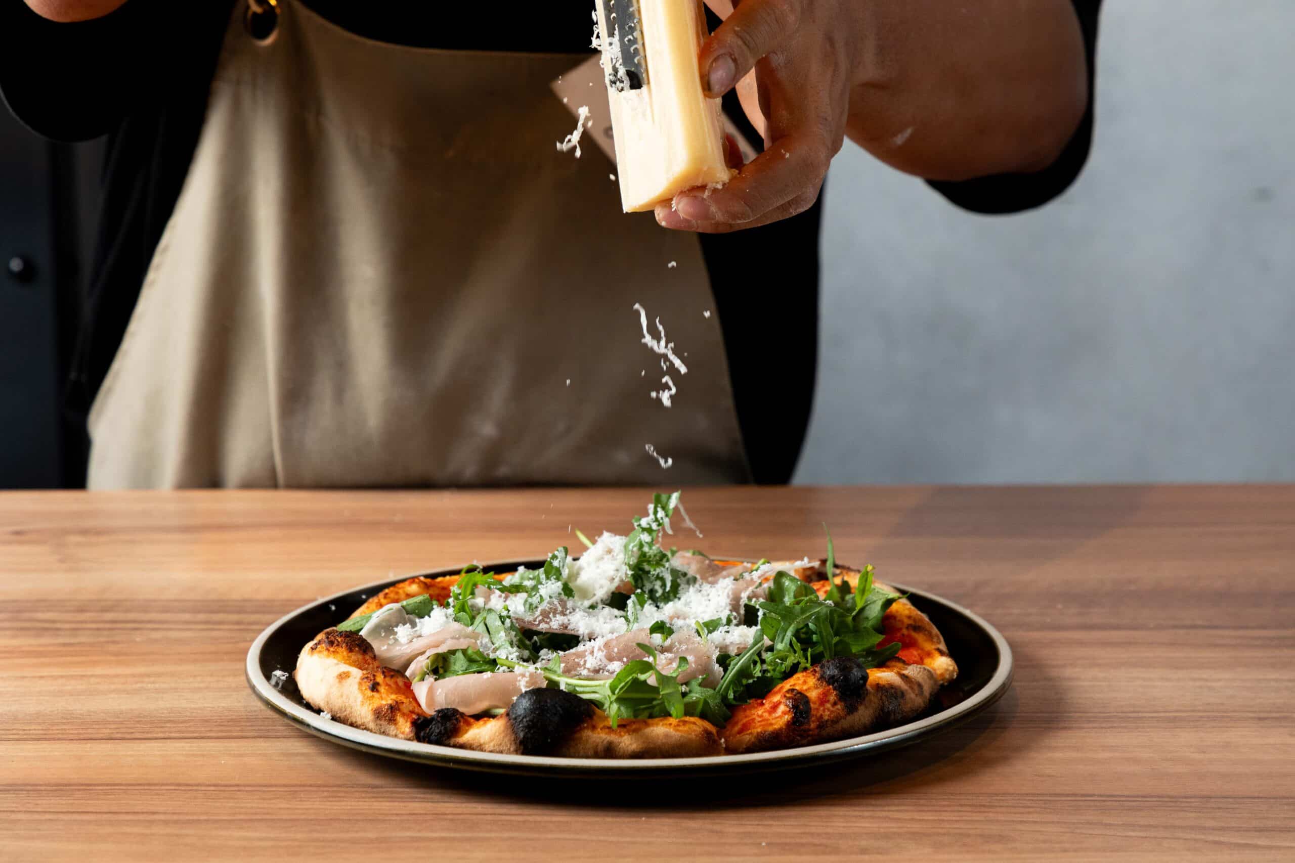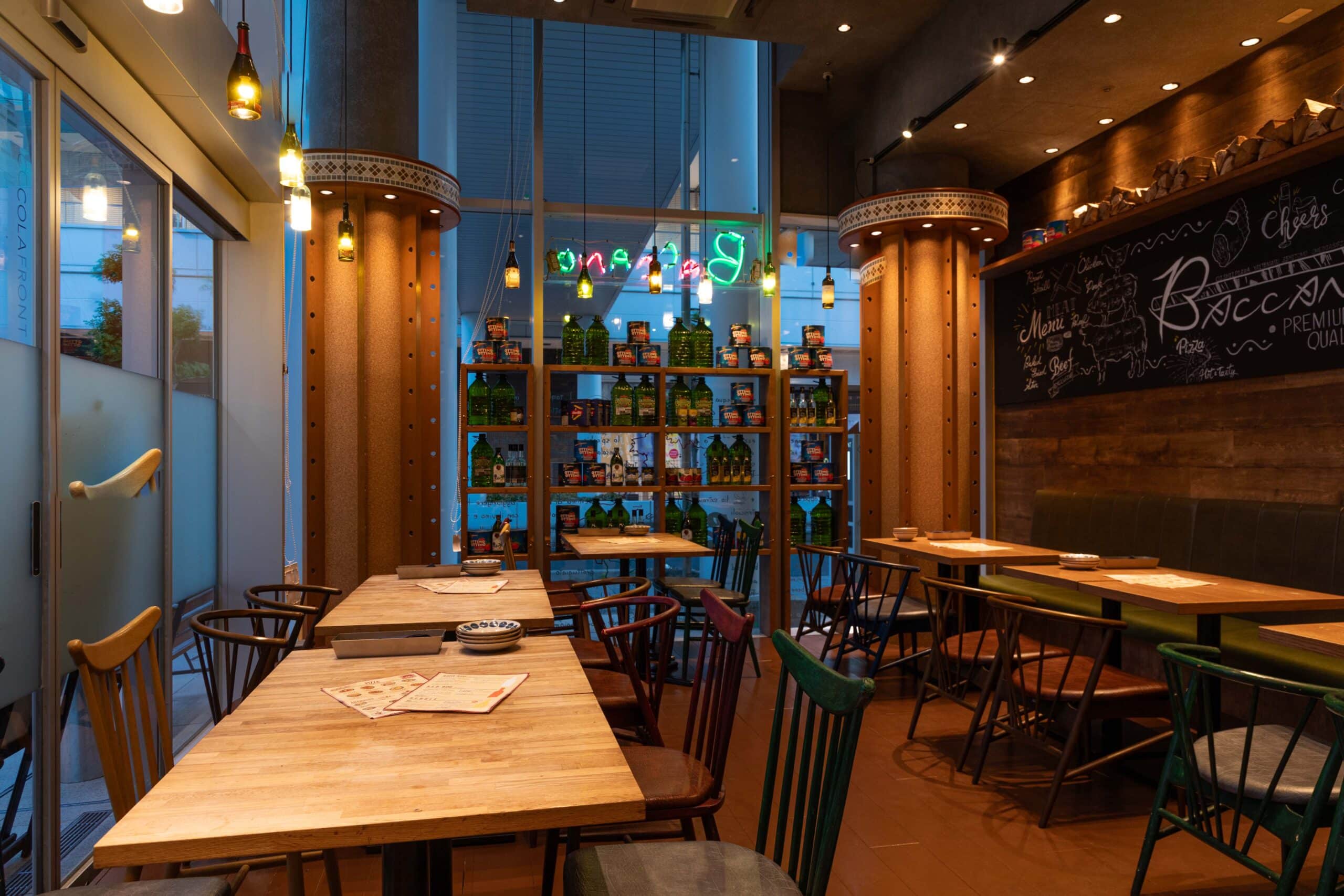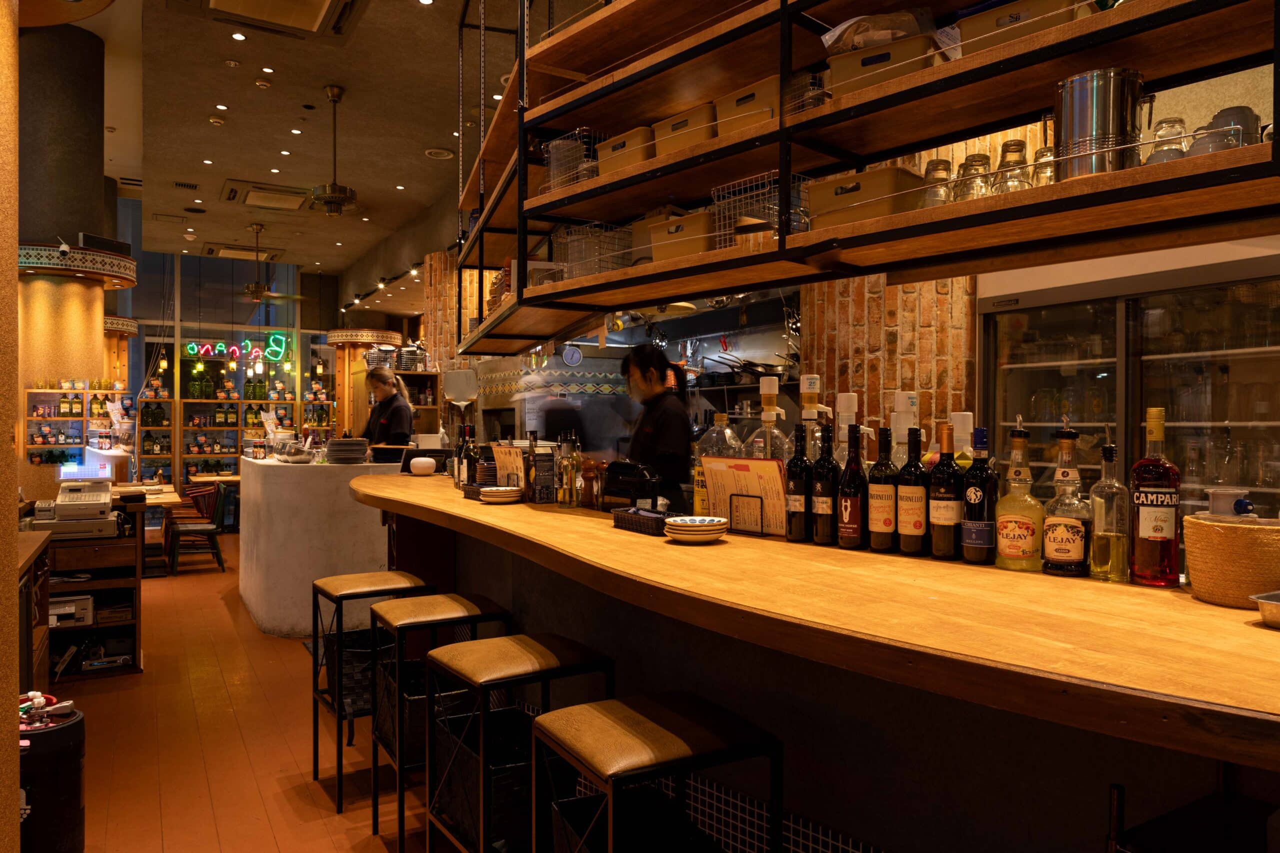 オープンキッチンが出迎える店内は、カジュアル感のあるお洒落な空間。大切な方とのデートや女子会にもおすすめです。目の前で焼き上げる自慢のピザは次第に香ばしい香りが漂い、出来立てをそのままご提供。