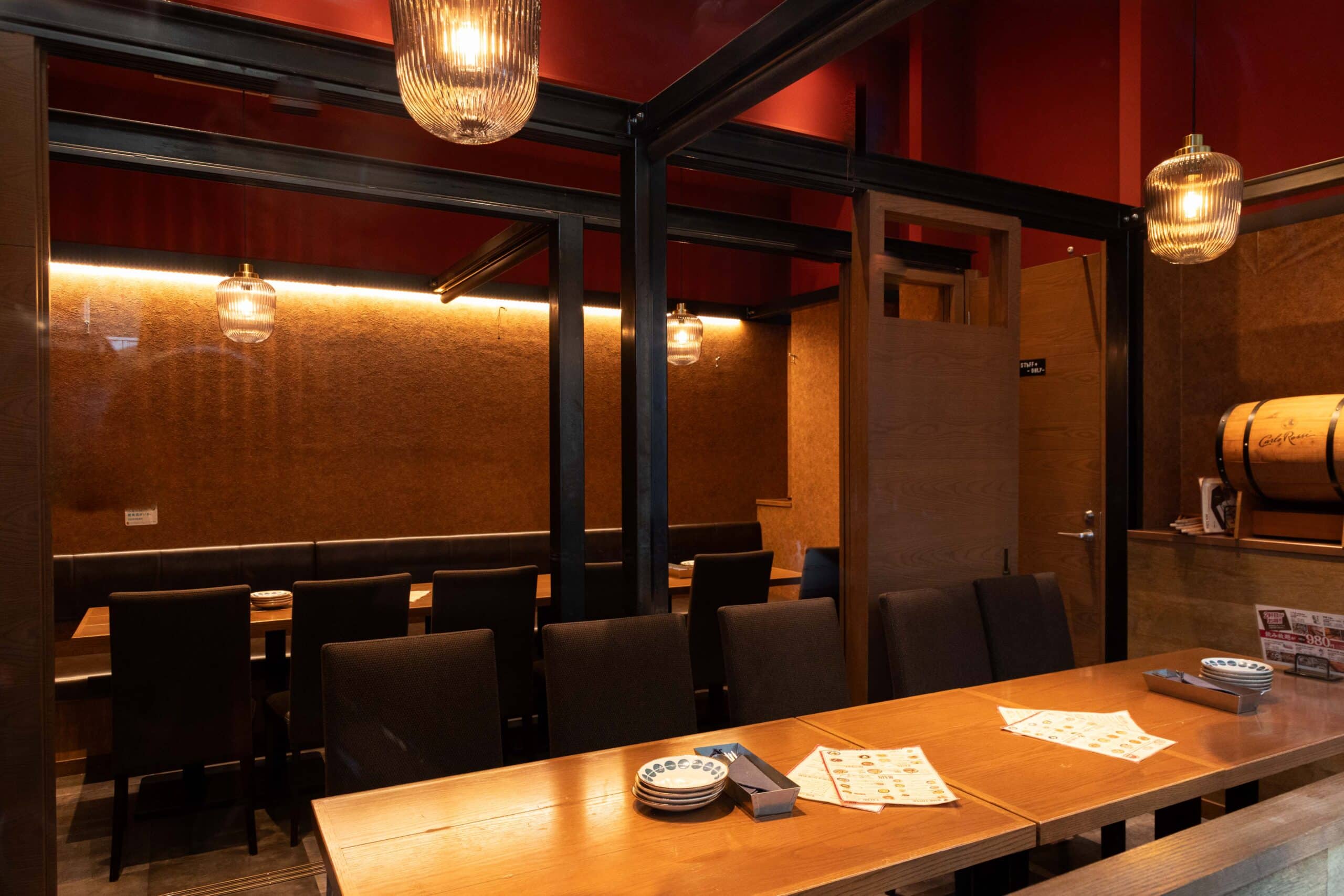 上質な完全個室をご用意できます。人数様にあわせて様々な個室タイプをご用意可能ですのでぜひお気軽にお問合せ下さい。大宴会から小宴会、合コンやデートまで幅広く使って頂ける和モダン空間。ご人数に応じた個室席にご案内いたしますので、プライベート個室席でごゆっくりおくつろぎください!